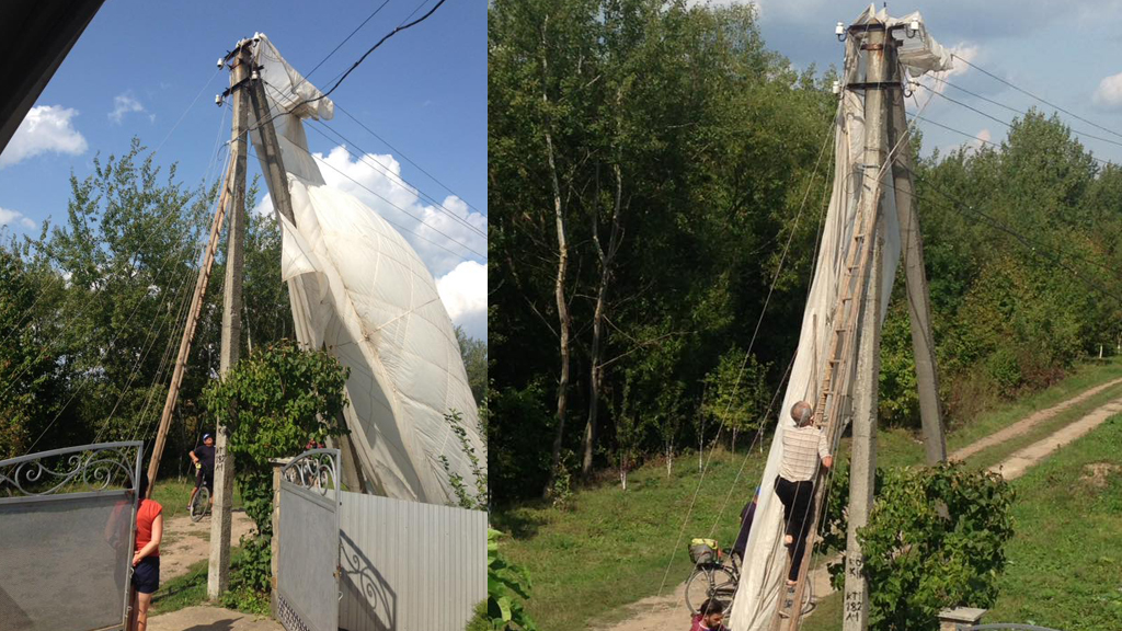 «От так сьогодні приземлився біля нас парашутист, дякувати Богу, що не приземлився сам на дроти», - написала у соціальній мережі Facebook Вікторія Стасюк, яка також опублікувала фото пригоди.