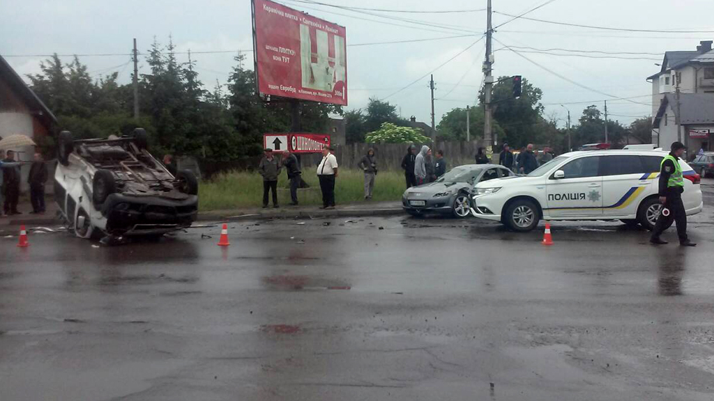У Коломиї сталася потрійна ДТП: Одна із автівок перекинулась