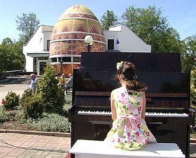 Піаніно просто неба. У Коломиї, перед Музеєм писанкового розпису, встановили музичний інструмент. Кожен охочий зможе торкнутися клавіш щодня, з 10:00 ранку і до 21:00 години. А першими на фортепіано зіграли учні музичної школи №1 та студенти педколеджу.