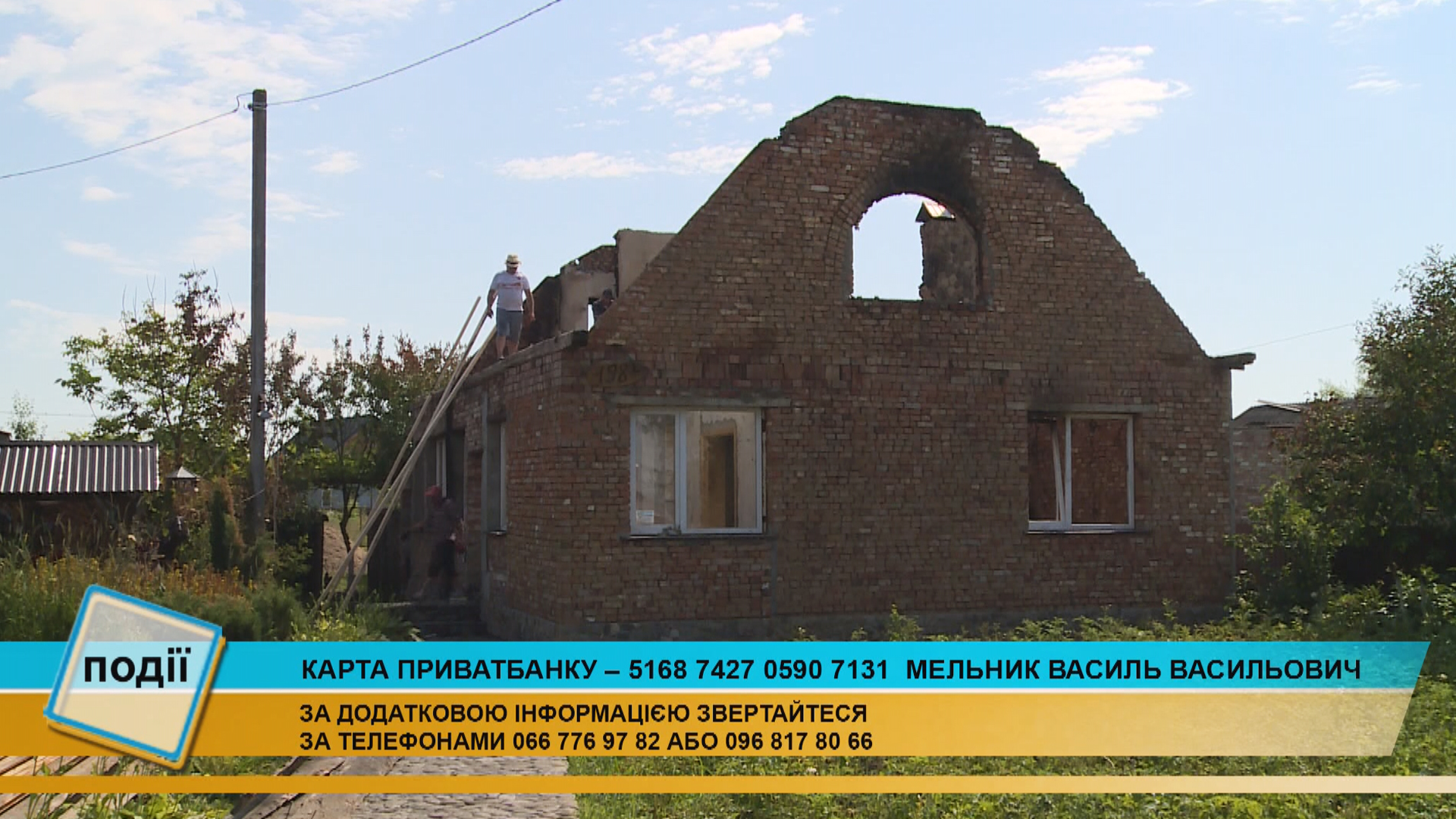 У Василя Мельника згоріла хата на вулиці Довбуша. Незабаром його сім'я мала святкувати тут новосілля, йдеться в сюжеті НТК.