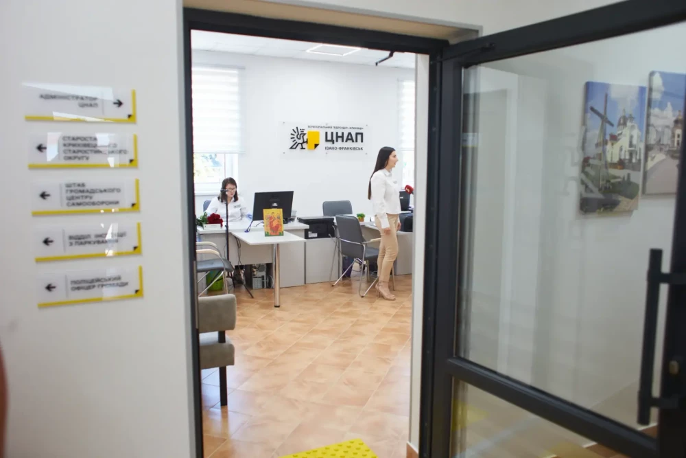 "Ми оновили територіальний підрозділ ЦНАПу, провели ремонтні роботи відповідно до принципів доступності, провели благоустрій прибудинкової території. Всередині встановили тактильні плитки, направляючі, і відповідно зробили усі інші умови для того, щоб послуги надавались якісно і були доступними. Звертається велика кількість військових, наших захисників та захисниць України. І також багато людей звертаються за реєстрацією місця проживання, оформленням державної реєстрації народження, державної реєстрації шлюбу та інших послуг. В цілому по всіх напрямках такі послуги у нас надаються, ми працюємо з управлінням пенсійного фонду, які сюди приїжджають і надають послуги для осіб похилого віку. Також ми працюємо з центром зайнятості, які також приходять сюди у відповідні дні і надають такі послуги. Тобто в цілому таке оновлення є в першу чергу про доступність, про людей і для людей", — переконує директор Департаменту адміністративних послуг Богдан Питель.
