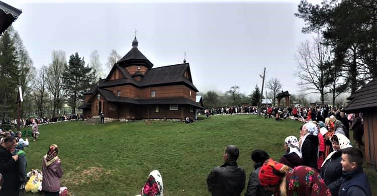 До церкви Різдва Пресвятої Богородиці, що в селі Криворівня Верховинського району, на Великдень зійшлося багато люду.