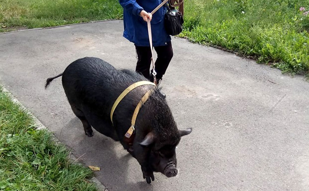 «Ой, дивіться, свиня на повідку!» — такими вигуками зазвичай випадкові перехожі зустрічають киянку Ірину Георгіївну, яка двічі на день вигулює свою домашню улюбленицю — 80-кілограмову свинку Марго.