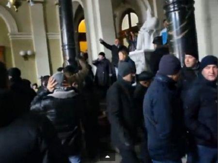Як повідомив кореспондент ZAXID.NET з місця події, підійшовши до будівлі, вони почали бити вікна і намагаються виламати вхідні двері.