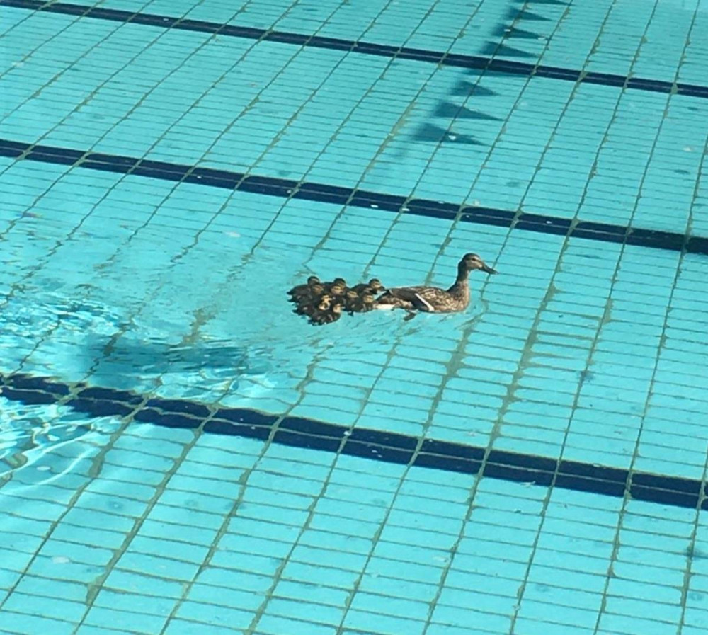 У Львові в басейні спорткомплексу засікли качку із каченятами