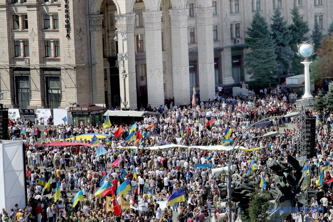 У Марші захисників, що проходив у День Незалежності центром Києва, взяли участь близько 12 тисяч людей ще 20 тисяч глядачів спостерігали за рухом колони.