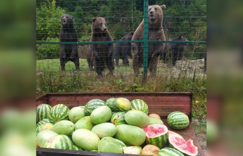 У мережі з'явилося вражаюче відео, як закарпатські ведмеді ласують кавунами