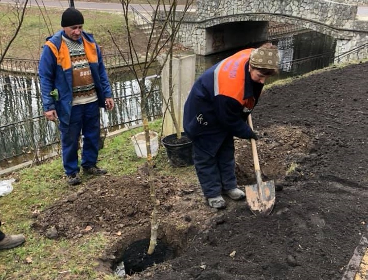 "В парку розпочалася чергова висадка дерев. Цим разом висадили 29 штук - липи, платани, японські клени, дерен Коуса, бобівник анагіролистий (золотий дощ), залізне дерево, мильне дерево, ліквідамбар (амброве дерево)", - зауважують комунальники.
