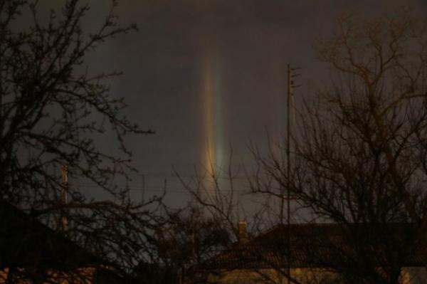 "Явище спостерігали протягом півтори години. "Стовпи" світла стояли не рухаючись, на одних і тих же місцях. Знімки явища зроблені на околиці міста, поблизу моря", – підписав змімки Орлов.