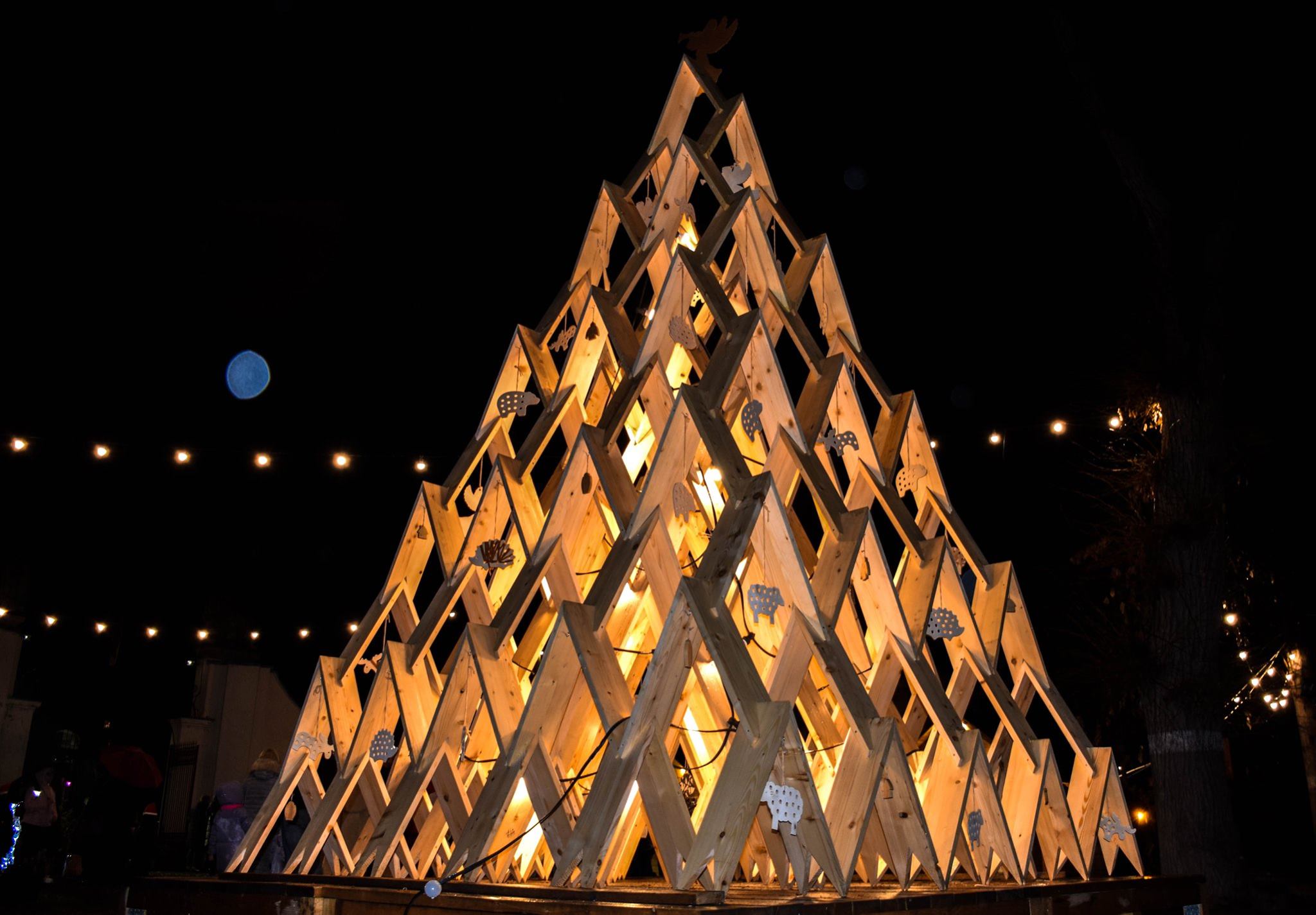 Дерев’яна конструкція прикрашена дерев’яними іграшками. Зокрема, виготовленими у творчій майстерні Центр для учасників АТО та їхніх сімей "Бандерівський Схрон". Про це йдеться на сторінці Палац Потоцьких «Простір Інноваційних Креацій «Палац».