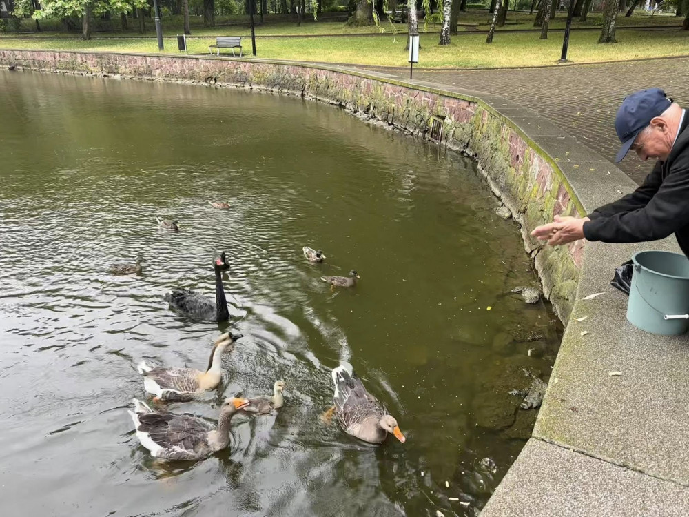 "У гордих гусей з’явилося мале гусенятко, яке так кумедно ховається під за татовим хвостиком. А ще тішать око качечки-мандаринки — тепер їх стало ще більше! Вони ласують молодою конюшинкою та із задоволенням смакують екструдований зерновий корм. Спостерігати за ними — справжня терапія: стільки спокою і ніжності серед зелені та води",- кажуть у адміністрації парку.