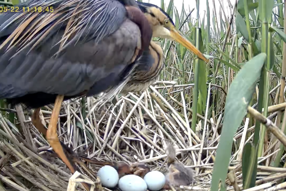 "Сьогодні у нашої парочки рудих чапель у гнізді появилось друге пташеня! Вчора матуся весь день вовтузилась (ремонтувала гніздо, чепурилася, намагалася погодувати пташеня). До речі, можна розгледіти на відео, що доросла чапля відригувала тритонів та бичків-ротанів. Останній вид риби є досить небажаним (інвазійним) для наших водойм",- йдеться у дописі.