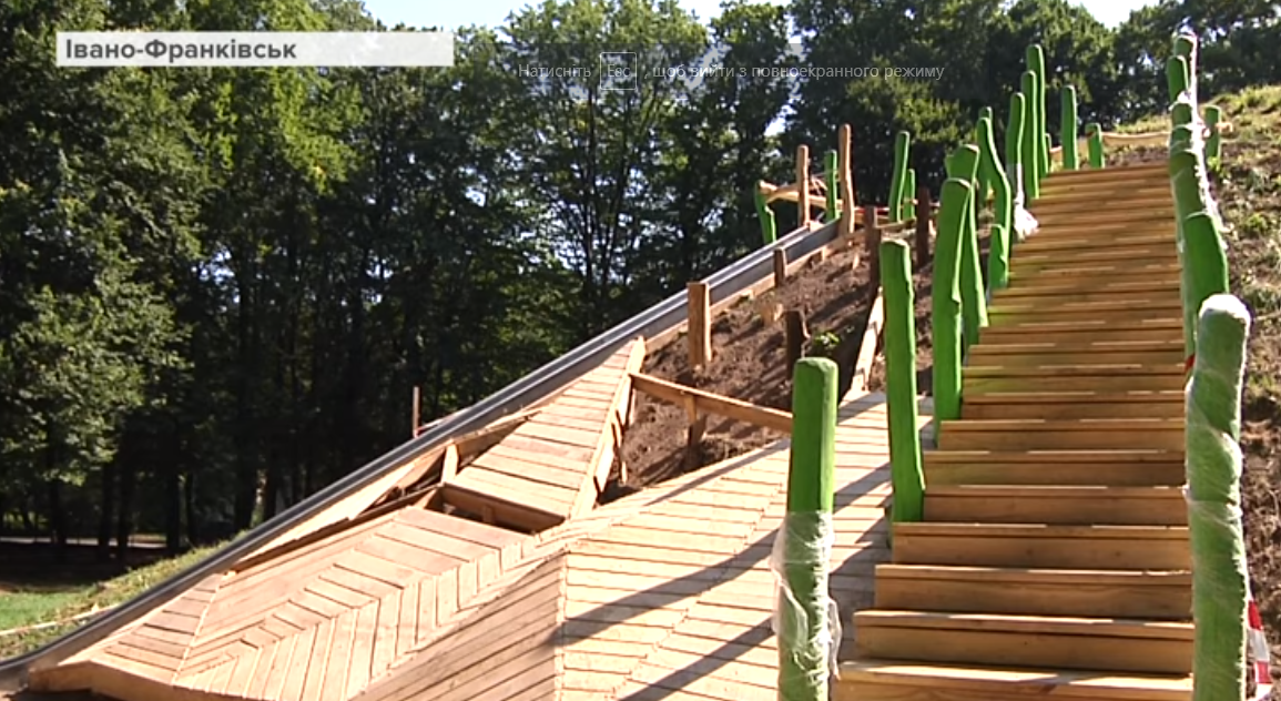 Розташували її на парковому пагорбі. Піднятись на гору можна буде сходами або за допомогою каната. А спуститись - на металевій гірці, йдеться в сюжеті 402 каналу.