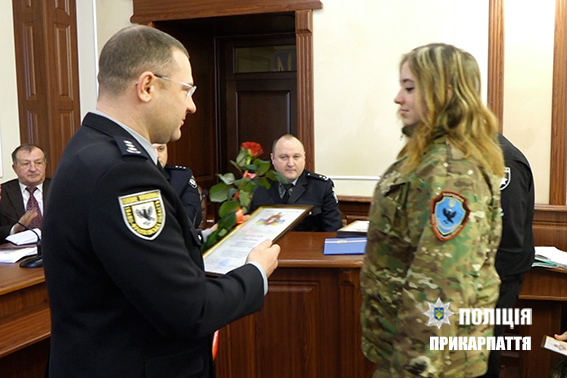 За надання допомоги в охороні публічної безпеки і порядку під час проведення масових заходів в період новорічних та різдвяних свят на території обласного центру, керівництво обласної поліції нагородило подякою найактивніших представників від громадських формувань.
