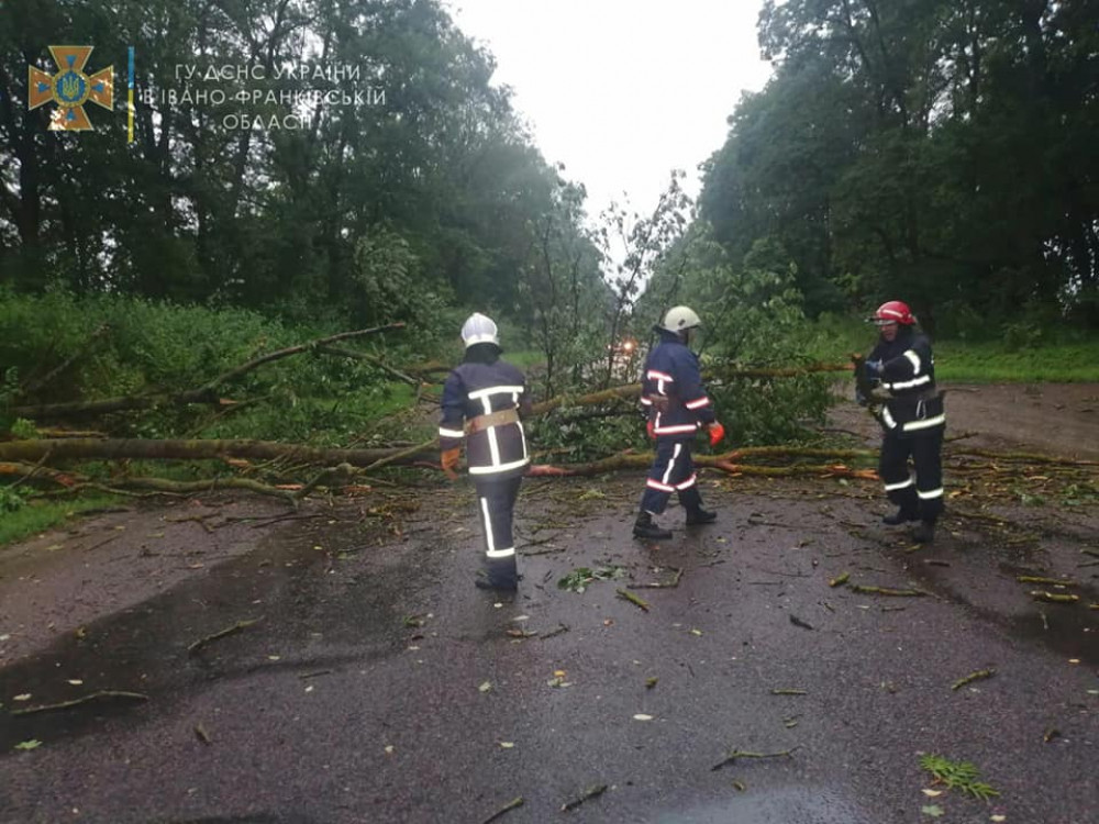 "9 серпня о 07:16 рятувальники 16-ї ДПРЧ міста Рогатин виїжджали для надання допомоги по розрізанню дерев, що впали на проїжджу частину автодороги у місті Рогатин Івано-Франківського району",- йдеться в повідомленні.