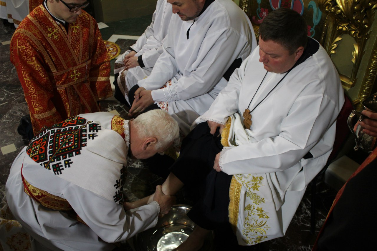 За уставом богослужіння, після Заамвонної молитви, Митрополит Володимир омив ноги одинадцятьом священнослужителям Івано-Франківської Архієпархії та Владиці Йосафату. Цей звичай є спогадом того вчинку, який здійснив наш Божественний Спаситель Ісус Христос на Тайній Вечері, пише прес-служба Архієпархії УГКЦ.