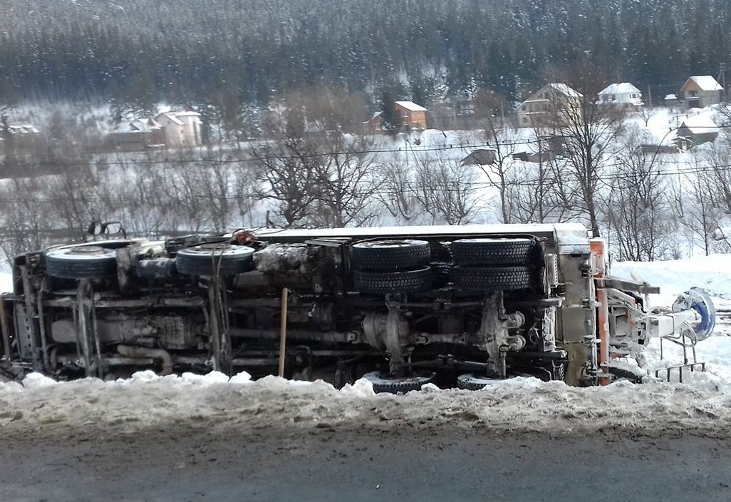 У Татарові вантажівка ПБС злетіла з дороги та перекинулась