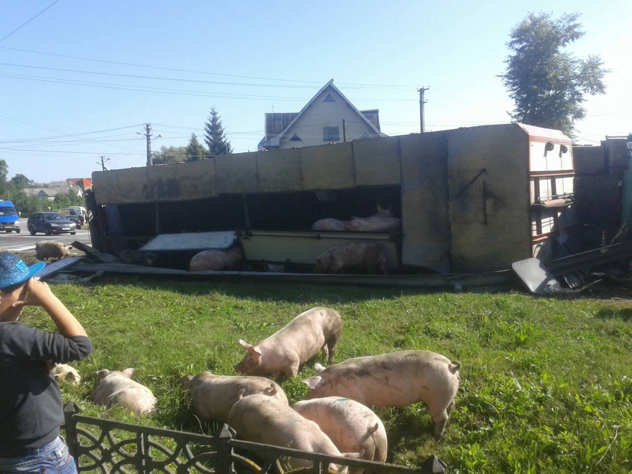 Як зазначається, травмувався водій. Свідки розповідають, що свині розбіглись по дорозі.