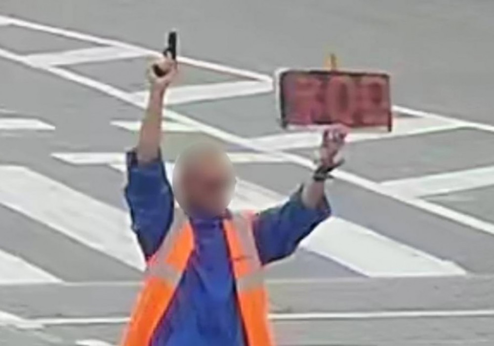Відео про цю подію ширилось сьогодні зранку Telegram-каналами. Чоловік з пістолетом на одному з перехресть міста намагався зупинити рух на хвилину мовчання - про це свідчила картонка у руках з написом "09:00".
