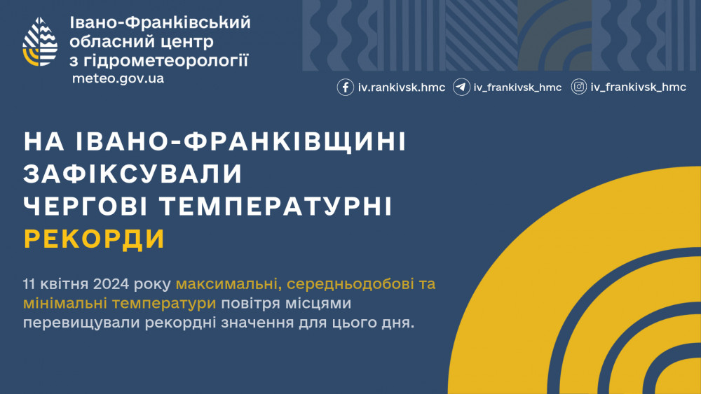 А мінімальні температури повітря в Івано-Франківську, Коломиї та Яремче були вищими від попередніх рекордних показників та становили: Івано-Франківськ +12,2⁰С; Коломия +11,3⁰С Яремче +12,1⁰С.