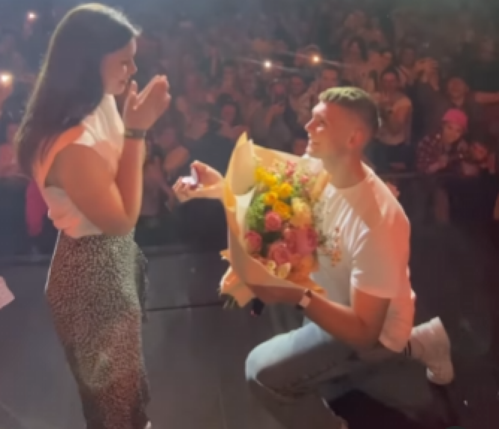 “Ти найпрекрасніша і найгарніша дівчина у світі, з якою я хочу бути все життя. Вийдеш за мене?”, – запитав музикант. Дівчина відповіла "так".