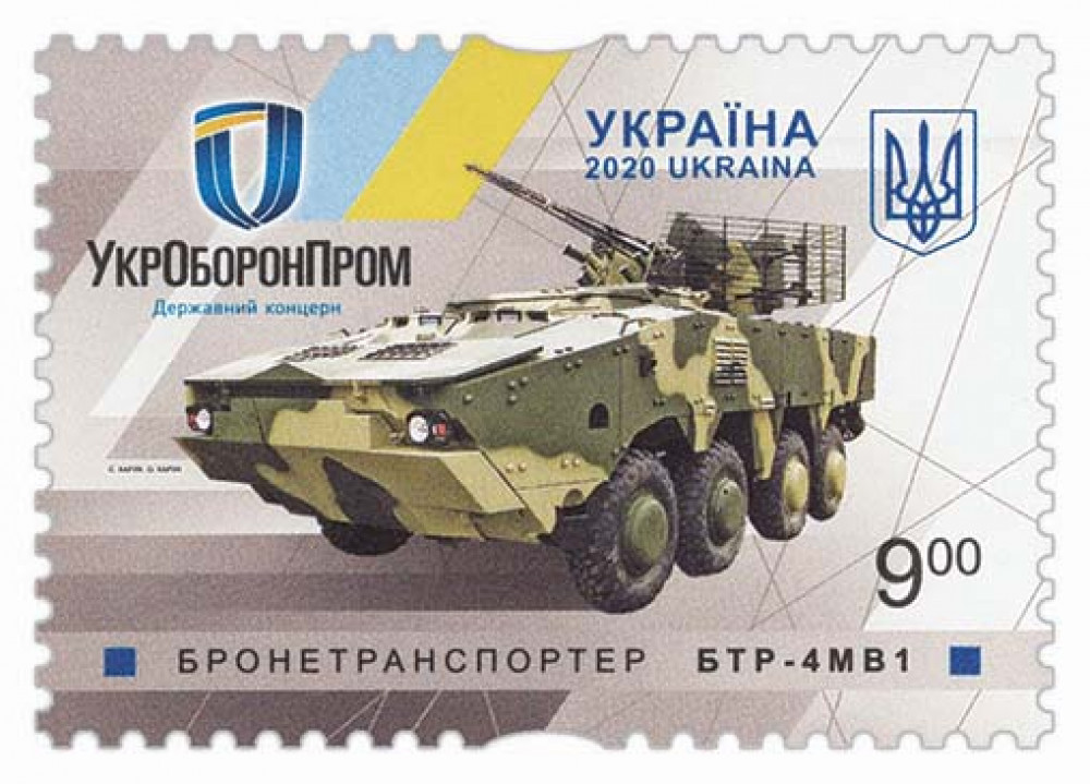 Укрпошта спільно з Державним концерном “Укроборонпром” 9 жовтня вводить в обіг марки «Бронетранспортер «БТР-4МВ1» та «Система БМ-21УМ «Берест» із серії «Національна військова техніка». Обидві бойові машини виготовлені на заводах, що входять до складу Укроборонпрому.