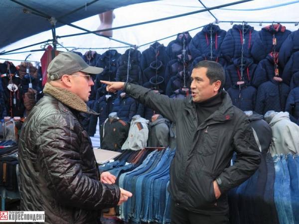 На речовому ринку наша група найперше підходить до продавця одягу, який представився Садиком Дамбінаєвим. Чоловік каже, що документи має, але вони вдома, запевняє, що зараз йому їх принесуть. Поки йому несуть документи, прямуємо далі за завідувачем сектора по боротьбі з нелегальною міграцією Степаном Іроденком. Зауважуємо, що багато торгових палаток вже без продавців. Іроденко зупиняється біля одного юнака, відрекомендовується і питає про документи. Це геть спантеличує хлопця. Він тільки каже, що його звати Міша і йому 19 років. Головного держінспектора управління Держпраці в області Марію Возняк хлопець запевняє, що тут не працює, а просто прийшов до сестри. Жінка, яка підійшла до хлопця, каже, що живе поруч і зараз принесе документи.