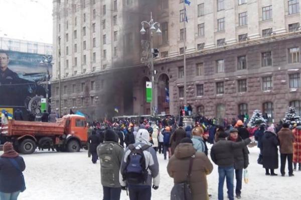 Невелика група силовиків , до десяти чоловік, опинилася поза автобусом, який виїхав. Силовиків оточили медики-волонтери червоного хреста, люди почали кричати: «Коридор». Створили коридор, і по цьому коридору силовиків вивели з-під Київради.