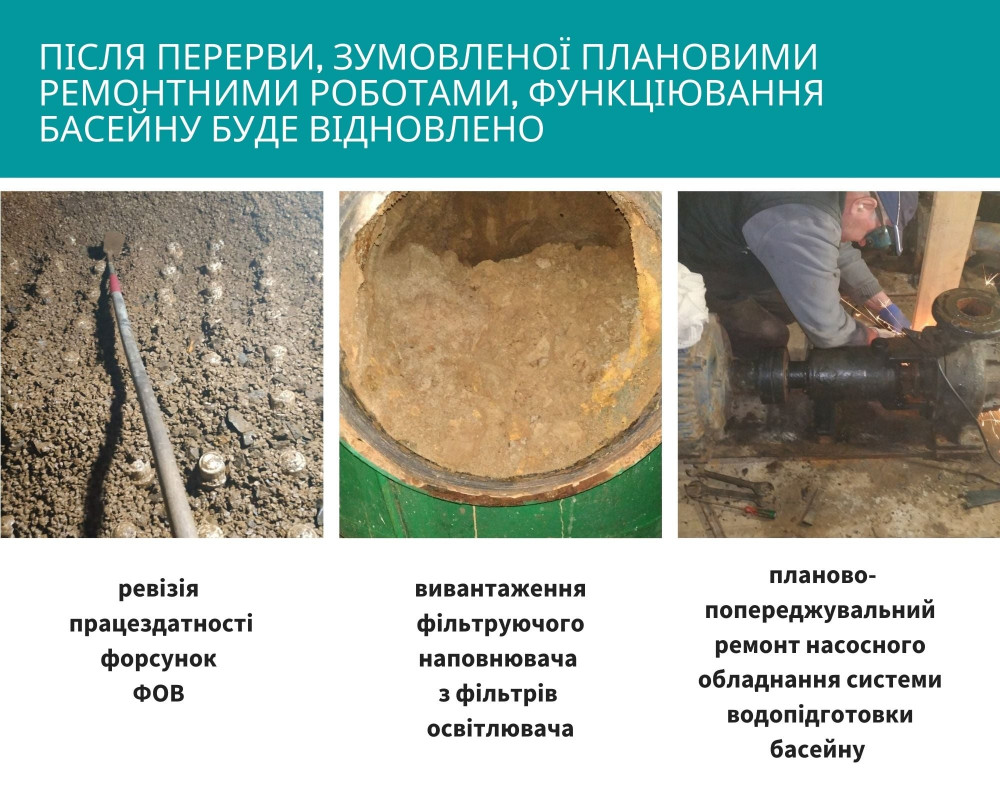 З метою забезпечення подальшої безперебійної роботи басейну, наразі здійснюють ремонт: