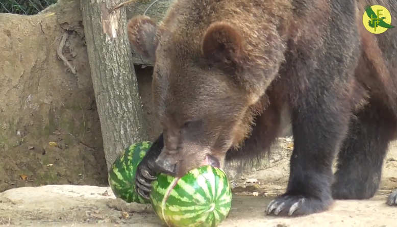 Небайдужі підприємці поділилися кавунчиками з родиною ведмедів, врятованих з Херсона до Галицького національного парку.