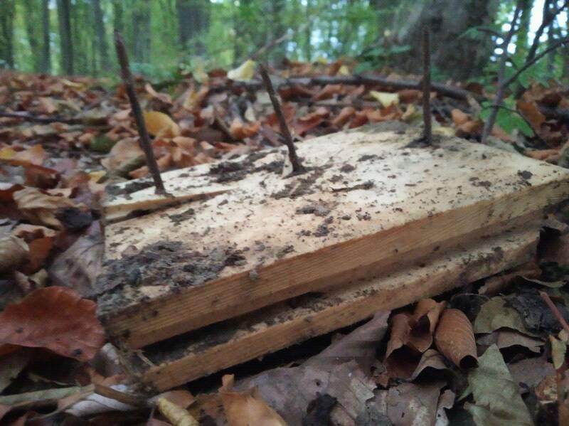 Невідома особа позакопувала на лісових стежках в Галицькому районі бруски з цвяхами.