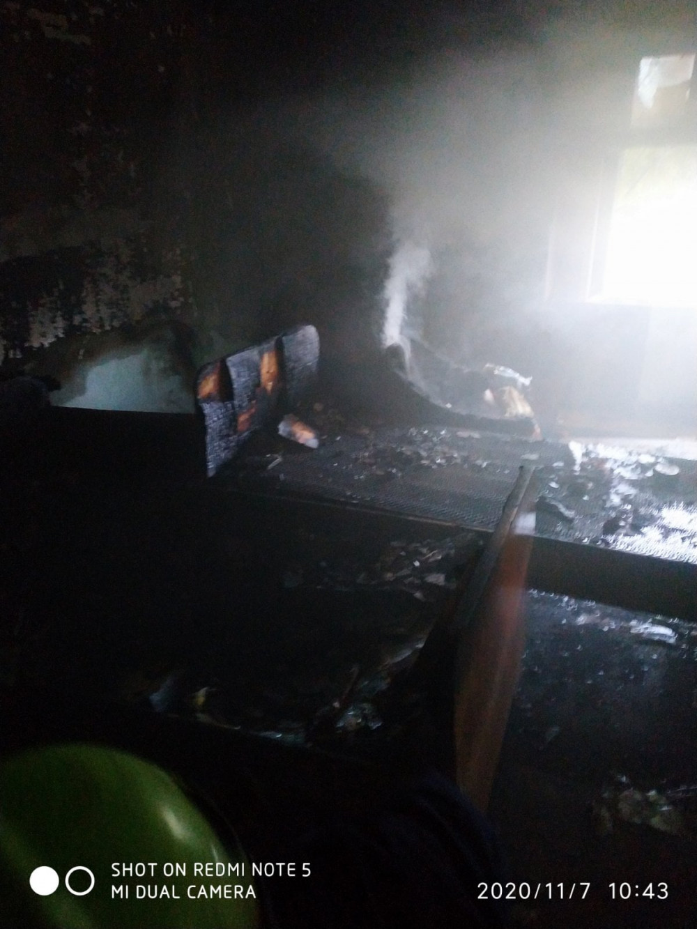 Внаслідок пожежі вогнем знищено один віконний отвір, особисті та хатні речі, що зберігались в кімнаті житлового будинку, стіни та стеля в житловій кімнаті в кіптяві. Причина виникнення пожежі необережне поводження з вогнем під час куріння збоку домовласника.