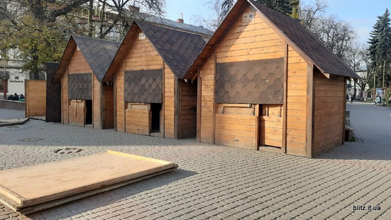 Зокрема, у понеділок, 18 листопада на Вічевому майдані франківські комунальники розпочали монтаж дерев'яних будиночків для проведення новорічно-різдвяного ярмарку, інформує кореспондентка Бліц-Інфо.