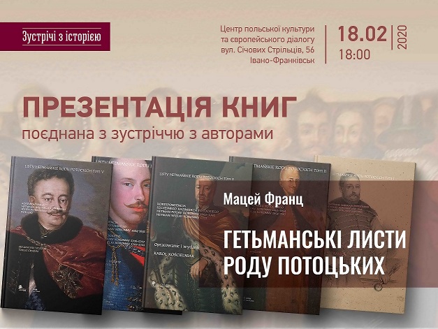 Центр польської культури та європейського діалогу в Івано-Франківську запрошує на презентацію Гетьманських листів роду Потоцьких і книжки „На службі Вітчизні. Військо Польське в системі безпеки південно-східних воєводств II Речі Посполитої (1921-1939)”.