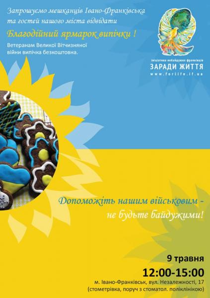 Як зазначають волонтери ініціативи небайдужих франківців "Заради життя", на ярмарку всім ветеранам Великої Вітчизняної війни та бійцям АТО роздаватимуть випічку.