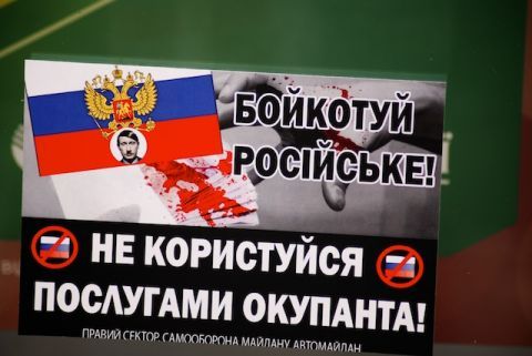 "Зайшов сюди - підтримав окупанта" та " Путін геть" наклеїли на "Сбербанк Росії" та "Альфа банк".