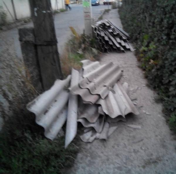 За словами чоловіка на тротуарі вже третій день стоїть будівельне сміття і шифер та заважає пішоходам вільно рухатися доріжкою.