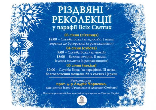 А також відбудуться різдвяні реколекції: