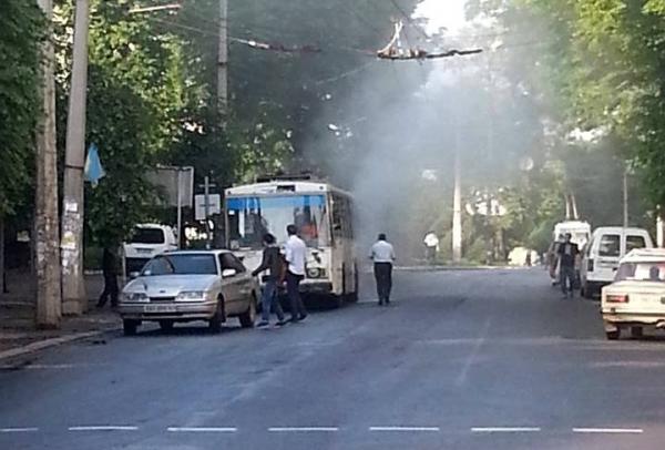 Сьогодні в Івано-Франківську близько сьомої вечора на вулиці Вовчинецька загорівся тролейбус
