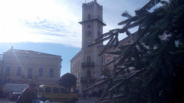 Головну ялинку міста вже встановлюють на традиційному місці. Вона така ж струнка й пишна, як минулого року, хіба трішечки вища. Прибула зелена красуня з недалеких країв - села в Коломийському районі.