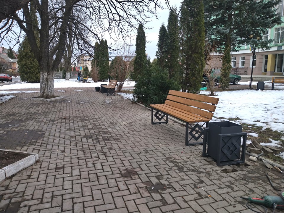"Але, лавки некомфортні (пряма практично спинка) і на алеї, де вони стояли, відсутнє освітлення. Освітлення було в тому місці, де не було лавок, тому літніми вечорами компанії молодих батьків з навколишніх п'ятиповерхівок мусили стоячи пантрувати своїх дітей. Одним словом, сквер на слабеньку трієчку. Вирішили це все виправити з мінімальними витратами. Замість старих лавок на алеї встановили нові, значно комфортніші, виробництва місцевих ковалів. Також встановили антивандальні ліхтарі, які освітили алею. Ближче до музичної, там де було світло, також встановили лавки. Біля кожної встановили смітники. Весною ще наведемо косметичний порядок з туями. Встановимо найближчими днями нові і відреставровані старі велостоянки", - анонсував мер.