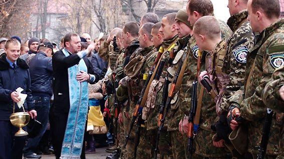Вже традиційно від’їжджаючих поблагословив капелан міліцейського спецбатальйону протоієрей Валерій Жигуц: «Я вам бажаю здоров’я, великої мудрості та самодисципліни. Божої допомоги вам, заступництва Богородиці та покровительства всіх святих. Пам’ятайте повсякчас – з нами Бог, з нами правда і з нами Україна!»
