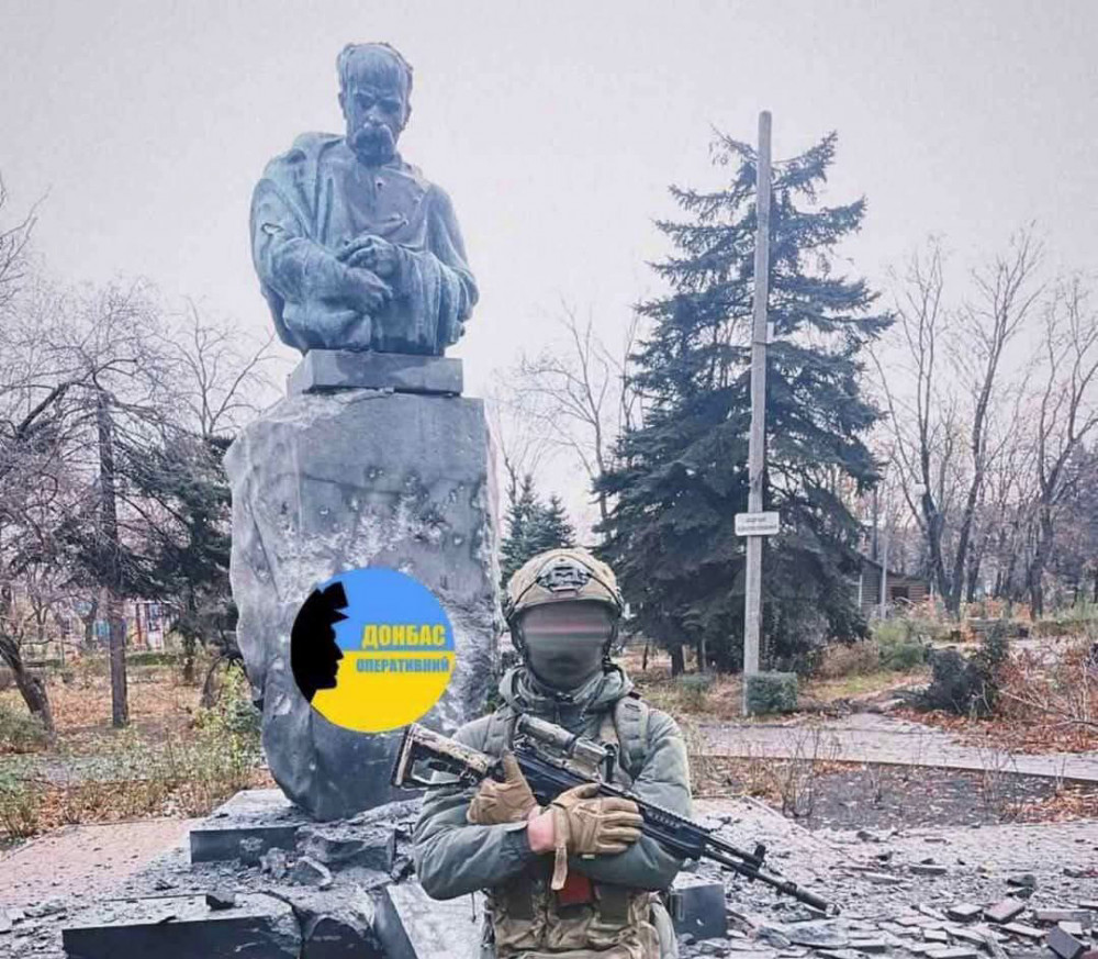 Росіяни в окупованій Новогродівці Покровського району розстріляли подарований Калушем пам’ятник Тарасу Шевченку.