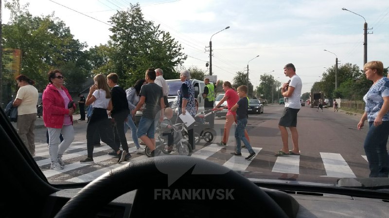 Люди перекрили дорогу о 10.00 год. Кожних 7 хвилин люди стають на тротуар і 3 хвилини пропускають авто, а тоді знову починають ходити по переходу. Також пропускають громадський транспорт. Обурені меншканці вимагають, щоб місто відремонтувало їхні вулиці, адже проїзду там майже немає.