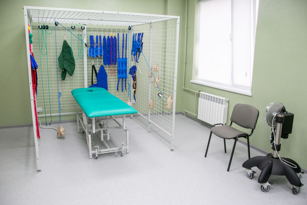 Одним із сьогоднішніх оновлень у відділі реабілітації є кабіна для кінезіотерапії. Тут будуть займатися як цивільні, так і військові після травм та захворювань хребта – усі ті, хто потребує реабілітації.