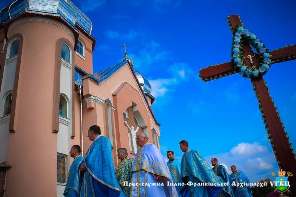 Настоятель парафії Покрови Пресвятої Богородиці митр. прот. Іван Когут, разом з численним духовенством на чолі з Боднарівським протопресвітером о. Ярославом Підлуським; діти, молодь та усі мешканці села радо вітали Предстоятеля Івано- Франківської Архієпархії на подвір’ї новозведеної святині.