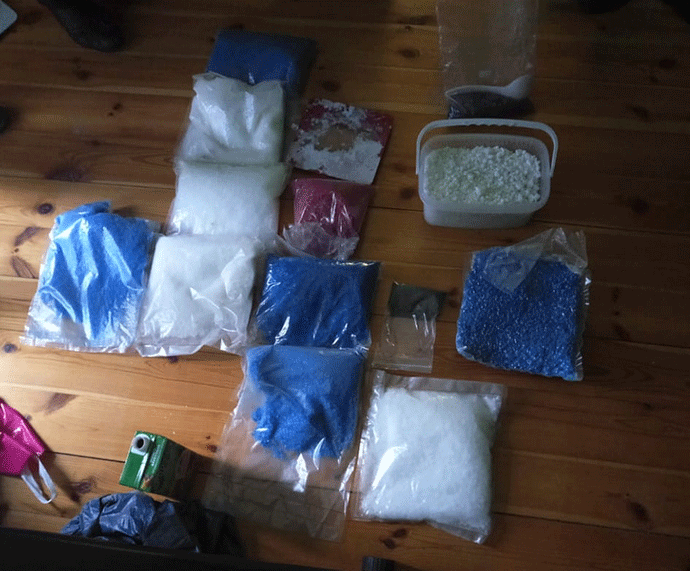 Під час проведення санкціонованих обшуків у приватному будинку на столичних «Осокорках» правоохоронці вилучили обладнання для виготовлення наркотиків, понад десять кілограмів психотропної речовини альфа PVP, п’ять кілограмів мефедрону, понад п’ять кілограмів амфетаміну загальною вартістю за цінами «чорного ринку» більше ніж двадцять мільйонів гривень.