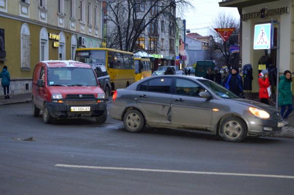 В середмісті Франківська Fiat в'їхав у Hyundai, який пропускав пішоходів