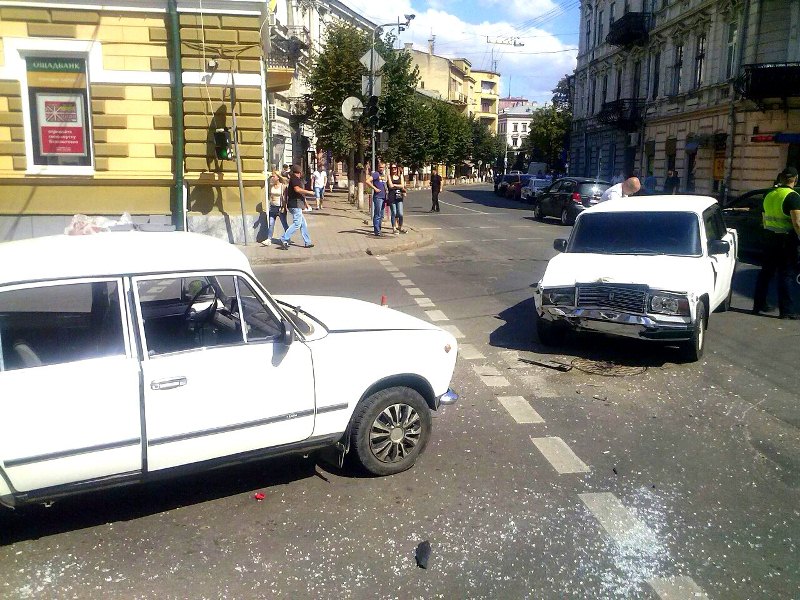 Як видно на фото, удар був дуже сильний, адже скло однієї з автівок вилетіло на тротуар.