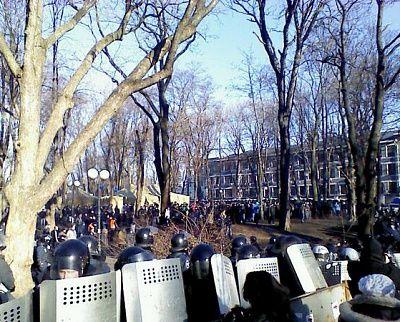Як повідомляє телефоном Ольга Баранецька, заступник страйкового комітету Коломиї, у Маріїнському парку, де сьогодні розпочалися сутички, знаходиться коломийська 14-та сотня. Мирний протест перетворився у протистояння коли почали підтягуватися "тітушки" та "Беркут".